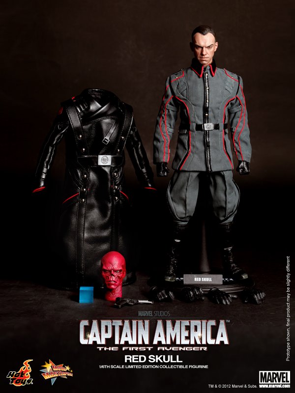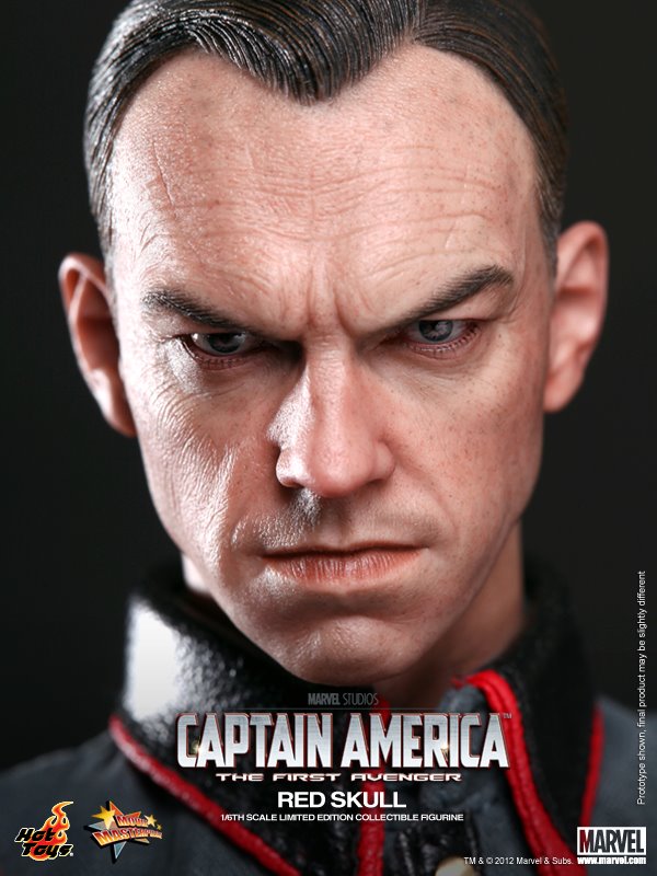 A Hot Toys apresentou no início do ano a figura de ação em escala 1/6 do Caveira Vermelha, interpretado pelo ator Hugo Weaving (sim, o agente Smith de Matrix ou Elrond de Senhor dos Anéis), inspirada no filme Capitão América: O Primeiro Vingador. Para quem já não se lembra ou pulou esse filme e foi ver logo Os Vingadores, antes de assumir a forma integral de Caveira Vermelha – líder da organização terrorista Hydra – em março de 1942 o oficial nazista Johann Schmidt invade a Noruega para roubar a Tesseract, objeto que confere grandes poderes a quem usa. Após conseguir capturá-la e extrair o máximo de suas energias, Schmidt se torna um grande perigo para o mundo, superando completamente os interesses germânicos na guerra, ou seja, ele queria dominar o mundo e só o Capitão América poderia impedir.