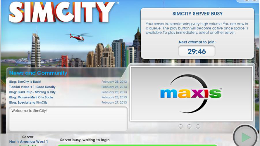 Seja como for, a hora de seu lançamento enfim teve inicio – e o que o público viu não foi nada satisfatório: um jogo que é simplesmente injogável, apresenta sérios problemas com a reclamadíssima DRM (Proteção contra pirataria) que ainda traz aquele velho sistema que os jogadores tanto odeiam, baseado na obrigatoriedade em ficar conectado com a internet todo o tempo para que o game seja iniciado; é o game ainda apresenta um outro sistema de salvamento server-side, ou seja, você melhora sua cidade, constrói tudo do bom e do melhor e o servidor tem problemas de instabilidade e precisa ser urgentemente reiniciado… you lose, você perdeu todo seu progresso.