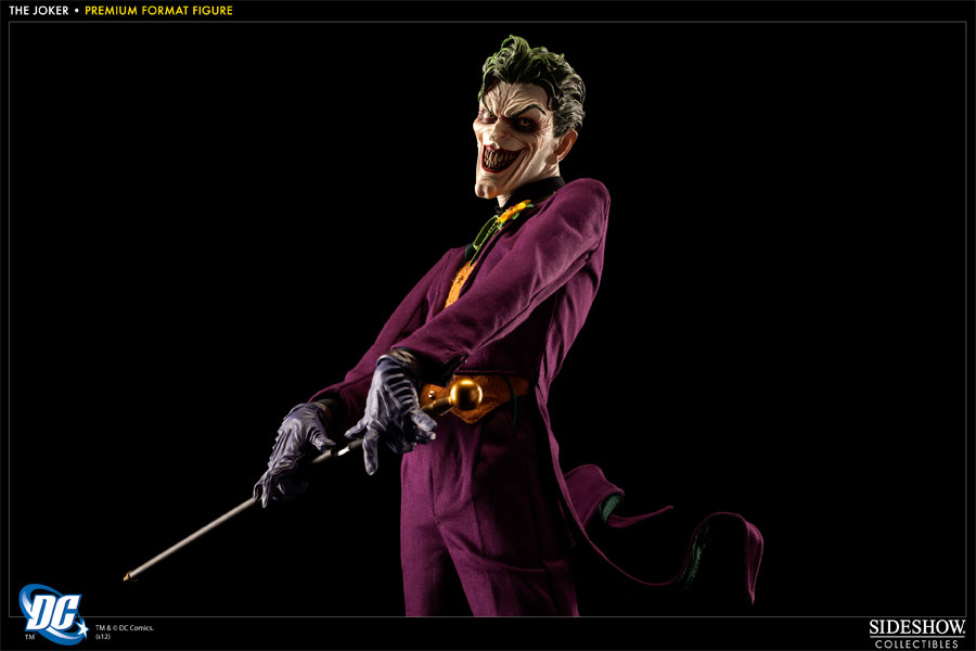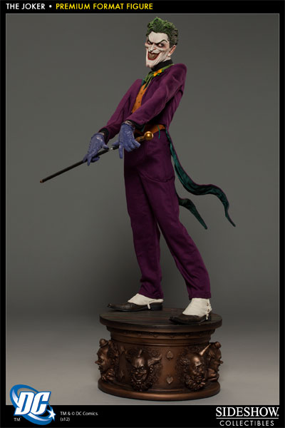 Agora chegamos ao ponto mais interessante, a sua figura! Joker não poderia estar melhor, e tão bem representado como em sua aparição em formato de Estátua pela Sideshow.