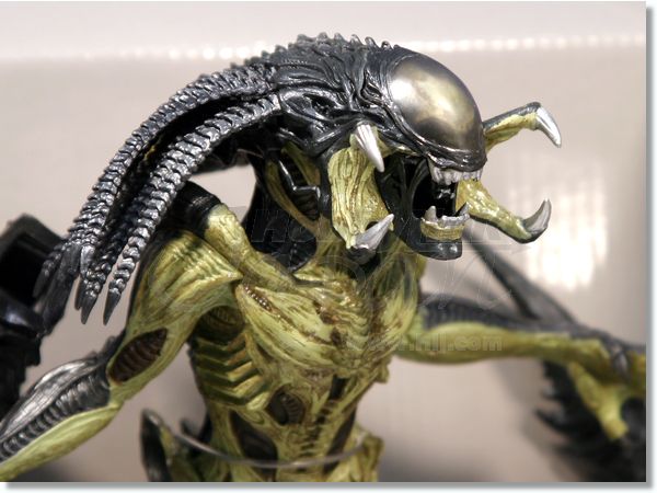 Com 19 centímetros de altura, a estátua preserva a pose mostrando a estranha mutação unindo duas espécies alienígenas. Sendo uma reprodução simples e também mais barata, é realmente uma boa aquisição pra você, que não tem muita grana para gastar mas gostaria de uma figura bem produzida.