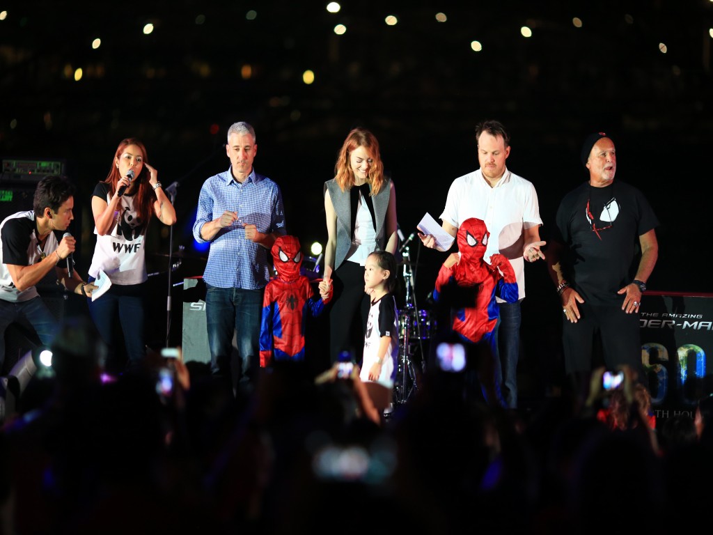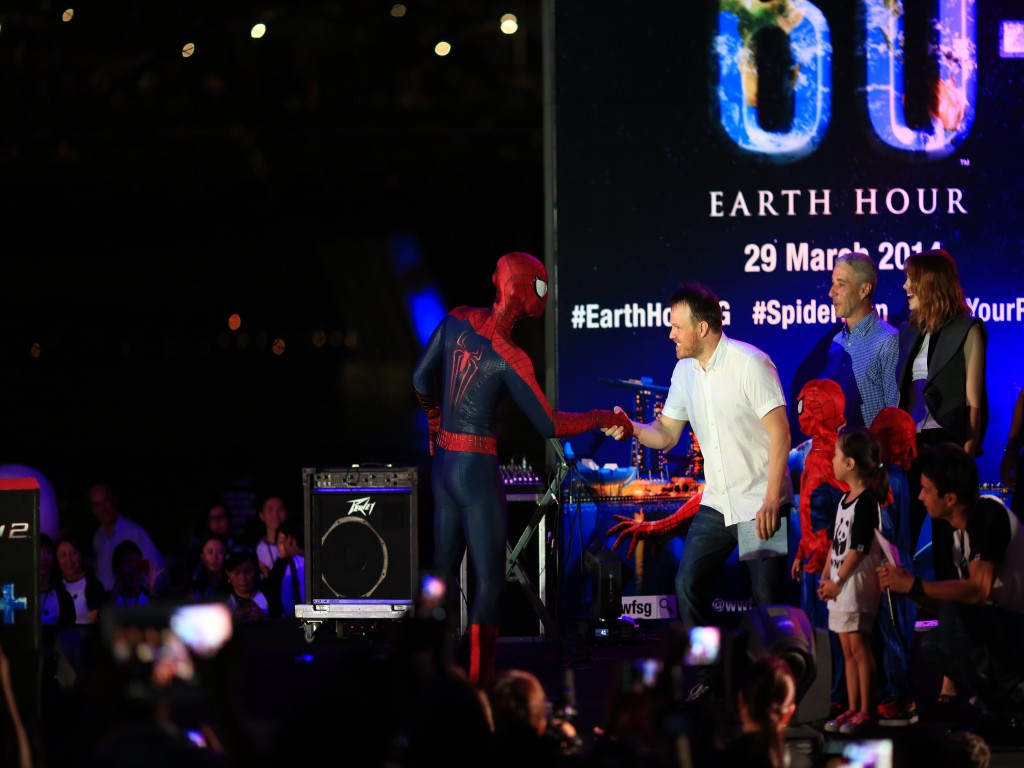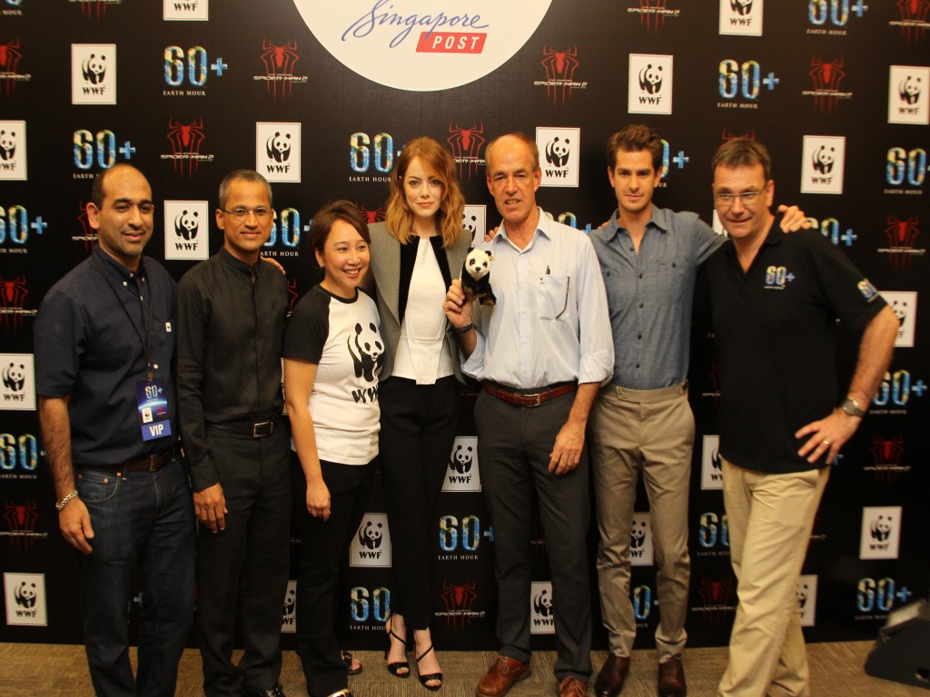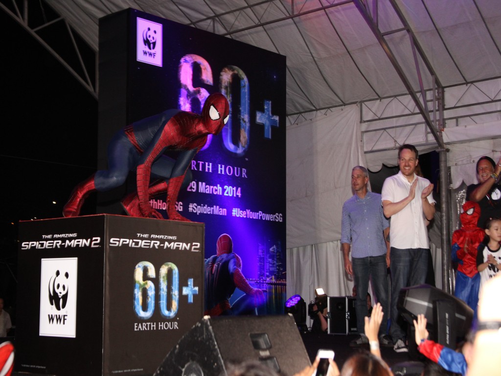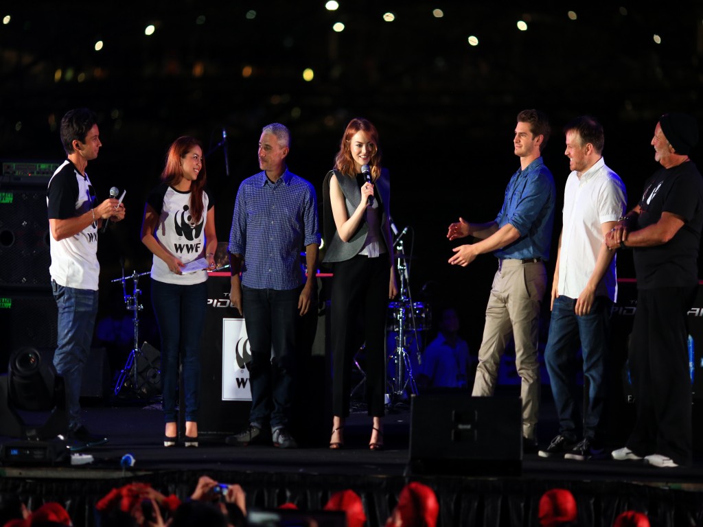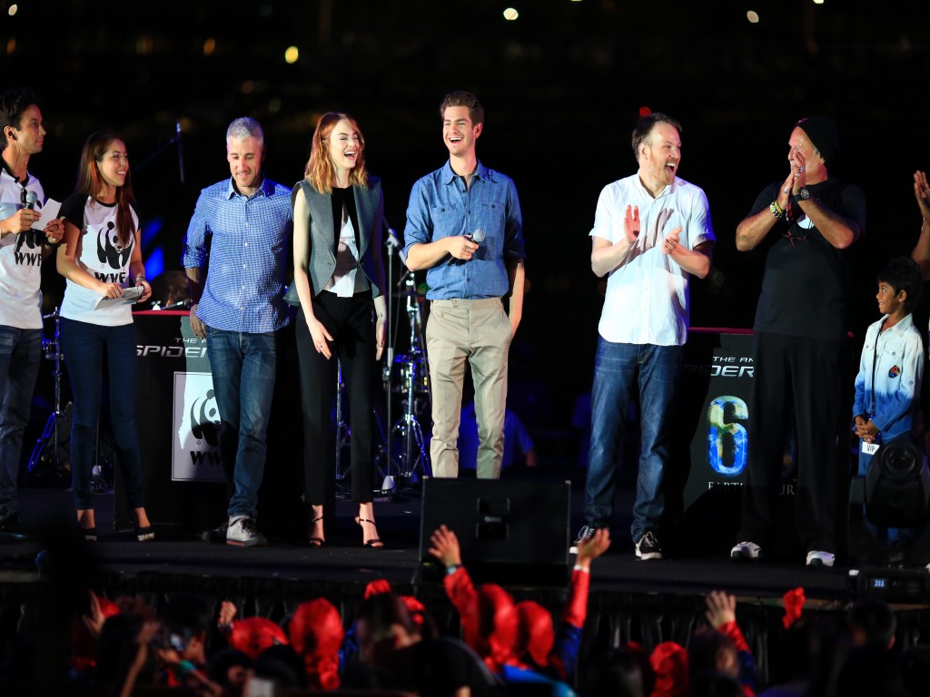 Isso mesmo, a promoção do filme O Espetacular Homem Aranha 2: A Ameaça de Electro continua a mil em todo o mundo, e o elenco (Andrew Garfield, Emma Stone e Jamie Foox), diretor (Marc Webb) e produtores (Avi Arad e Matt Tolmach) estiveram em Singapura no último dia 29/03 para participar da Hora do Planeta.