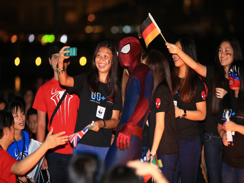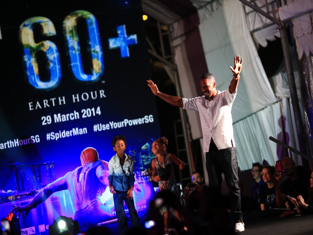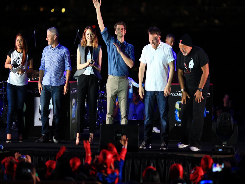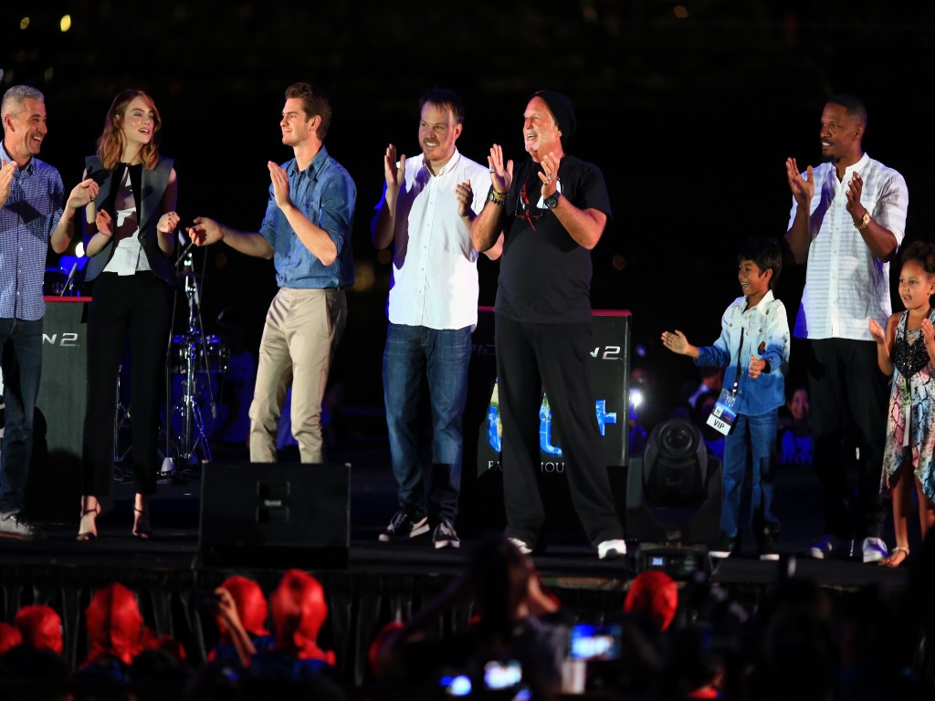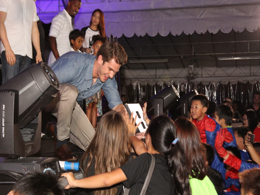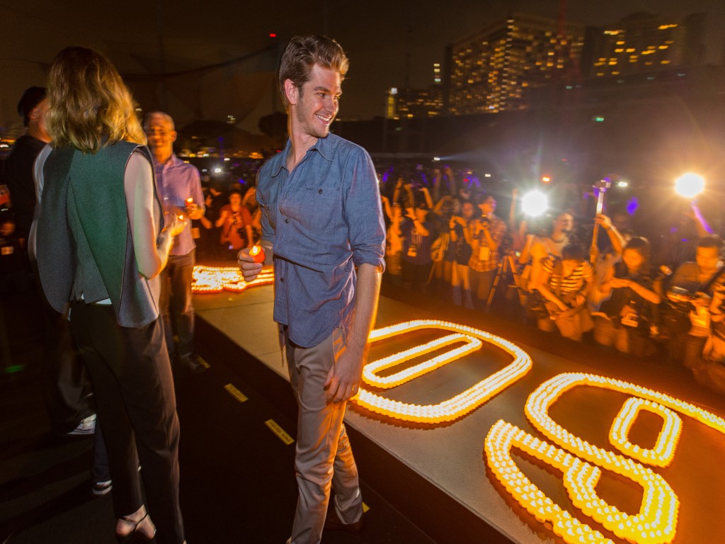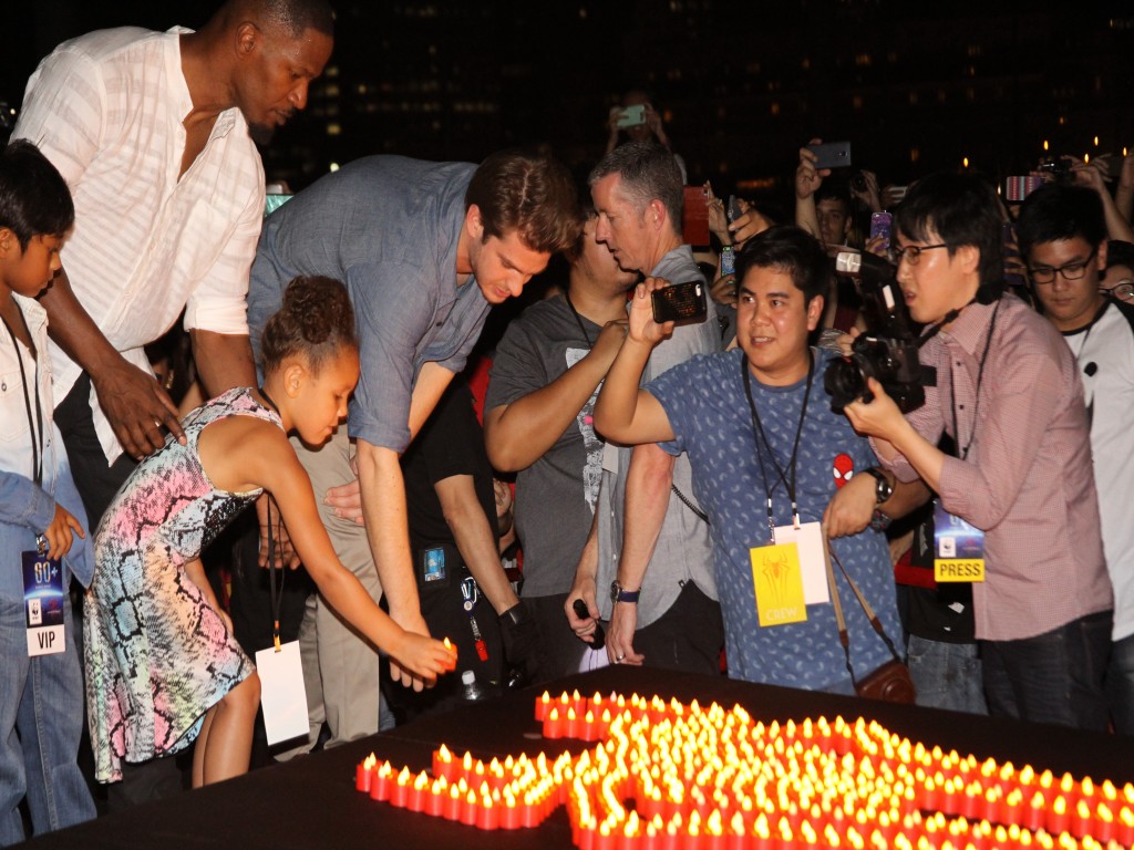 Isso mesmo, a promoção do filme O Espetacular Homem Aranha 2: A Ameaça de Electro continua a mil em todo o mundo, e o elenco (Andrew Garfield, Emma Stone e Jamie Foox), diretor (Marc Webb) e produtores (Avi Arad e Matt Tolmach) estiveram em Singapura no último dia 29/03 para participar da Hora do Planeta.