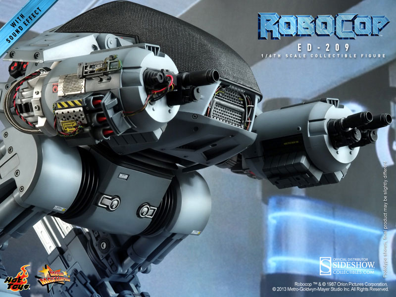 Tendo sua primeira aparição no longa de 1987 (RoboCop), o “Enforcement Droid Series 209” ou apenas “ED-209” nada mais é que um protótipo desenvolvimento pela OmniCorp para combater o crime; sua missão era simples: “desarmar e prender”, mas não exatamente isso que ele fez em uma das cenas mais memoráveis do filme: