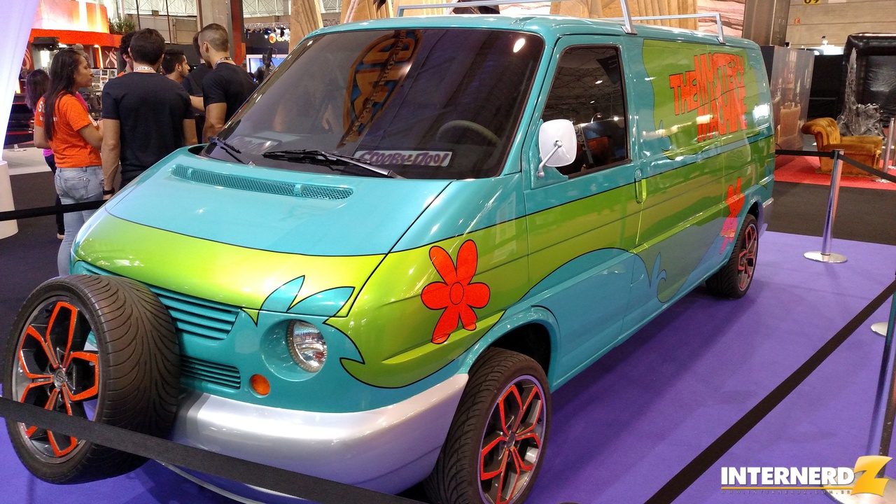 Além disso, durante o nosso passeio pelo estande tivemos a oportunidade de conhecer os veículos de duas grandes franquias da empresa: O batmóvel da série dos anos 60 e o furgão do filme do Scooby Doo.