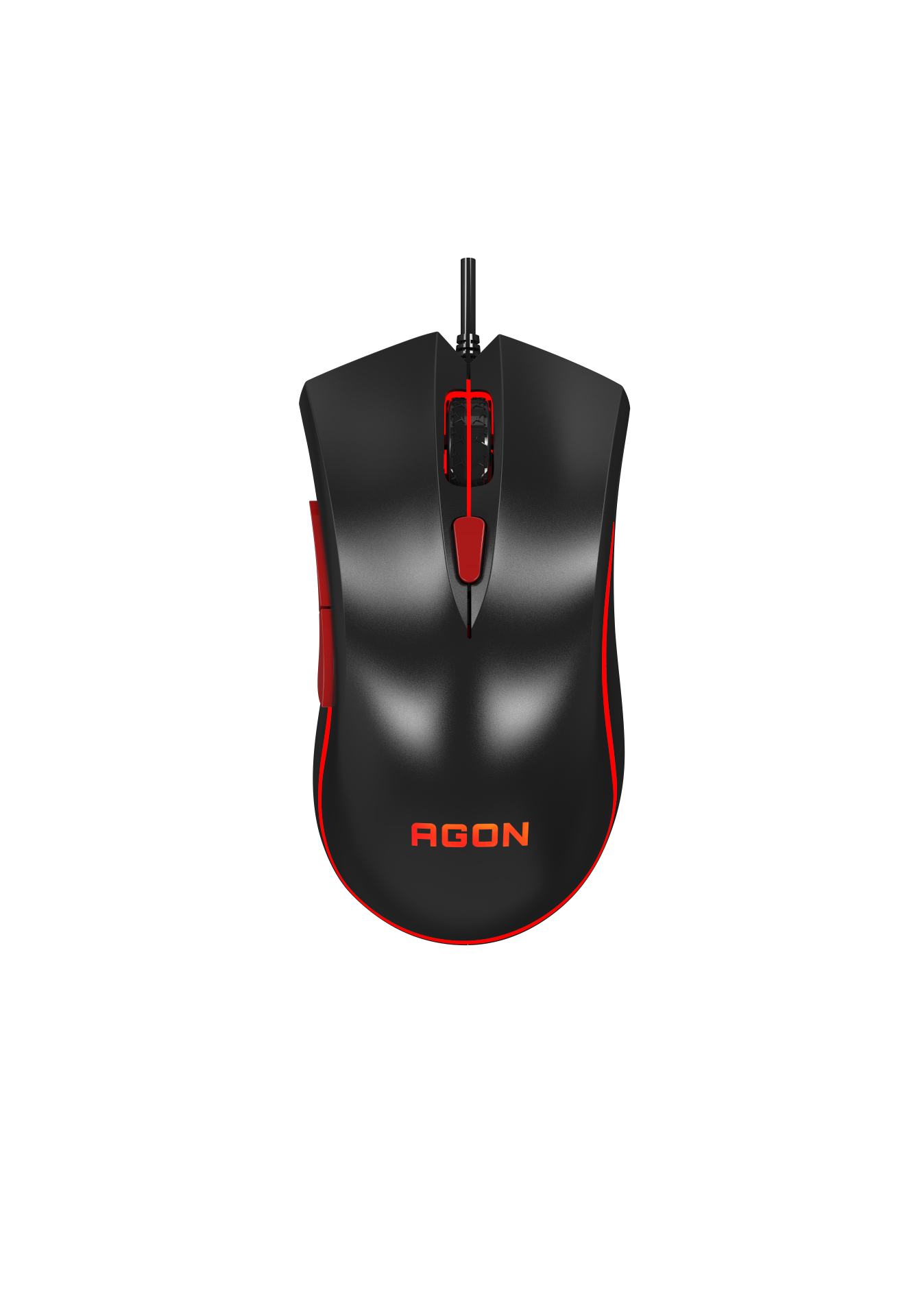 O mouse gamer Agon de 4.000 DPI possui acabamento preto e luzes em vermelho no logo da marca e nos detalhes em torno do produto, o que tornam o design do aparelho um chamariz para os jogadores que desejam incrementar sua gaming station. A iluminação também varia as tonalidades de cor para personalizar o ambiente de diversas maneiras enquanto os jogos estão rodando.
