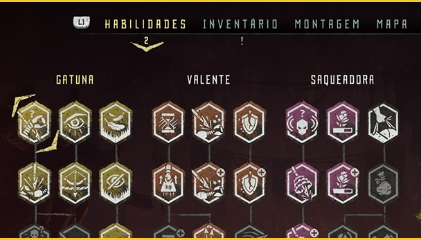 Em termos de progressão, você encontrará 3 árvores que seguem por rumos diferentes como furtividade, combate à curta distancia e cura e rastreio de itens. Ambas incorporam playstyles diferentes mas que se quase obrigatoriamente precisam se mesclar para um alto desempenho.