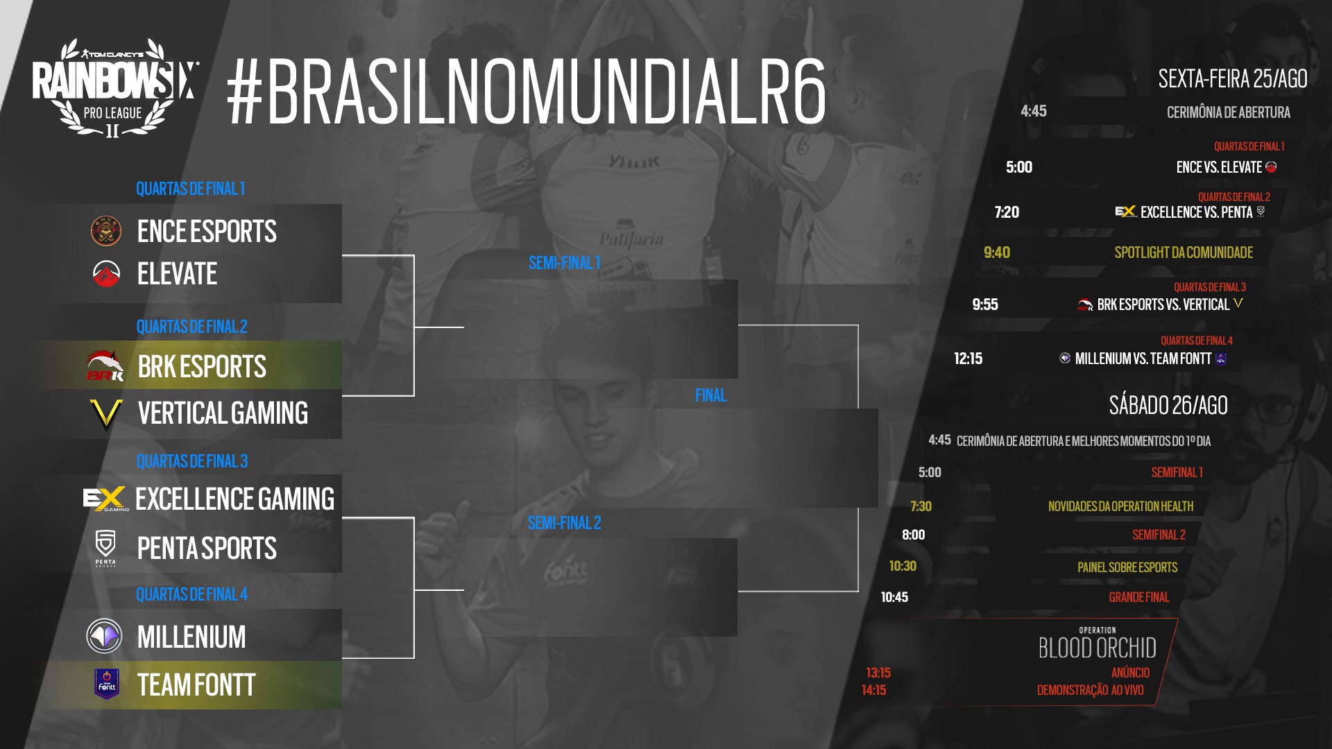 Além disso, o time brasileiro está na final da Pro League de Rainbow Six Siege, na Alemanha, com muita chance de levar este título e mostrar que o eSports está com um cenário bem forte em nosso país com jogadores excelentes. Todas as partidas poderão ser vistas, ao vivo, nos canais da Ubisoft eSports no Twitch e no YouTube.