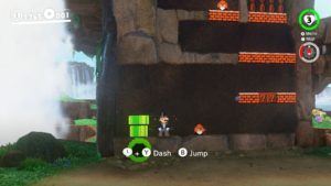 Por falar em moedas, existem dois tipos nesse game. O primeiro tipo, convencional e mais fácil de conseguir. Elas são usadas para comprar alguns itens e também são debitadas sempre que você “morre” – não há mais game over. O segundo tipo de moeda é “local”, cada reino tem a sua. Esse dinheiro local permite que você compre roupas para o Mario, adesivos e enfeites para o Odyssey.