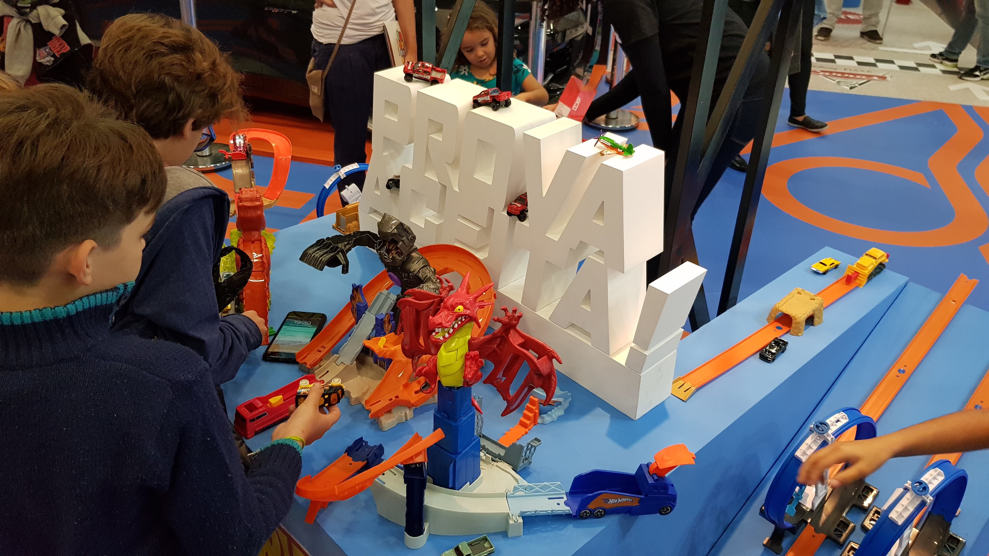 No local os visitantes podem aproveitar e realmente utilizar os produtos, não estão apenas expostos em vitrines, a coleção Hot Wheels, com pistas enormes.