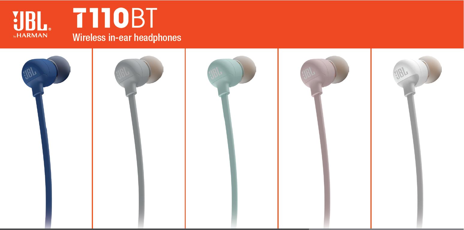 T110BT é diferente dos anteriores, este é in-ear Bluetooth, bastante discreto mas com uma ótima qualidade de som, tecnologia JBL Pure Bass para uma experiência de graves mais profundos e potentes, cabo magnético flat controle para troca de música e volume.