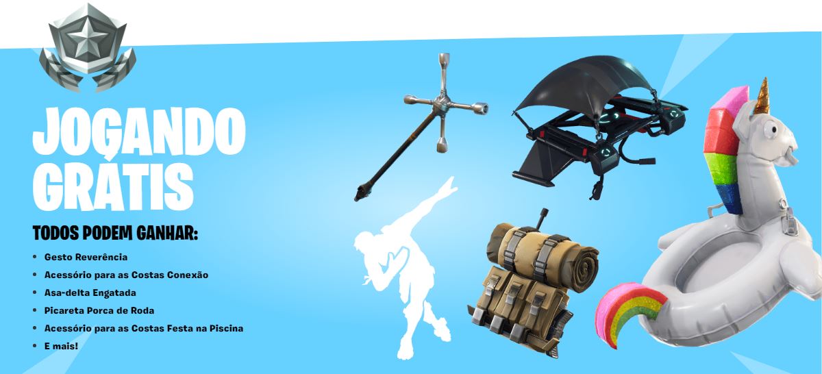 Para os jogadores que mantém o jogo totalmente gratuito, agora na temporada 5, irá receber melhores itens e também poderá realizar metade das missões semanais disponíveis, fica mais fácil subir de nível com o passe gratuito, além de receber gestos, acessórios das costas, Picareta, entre outros itens.