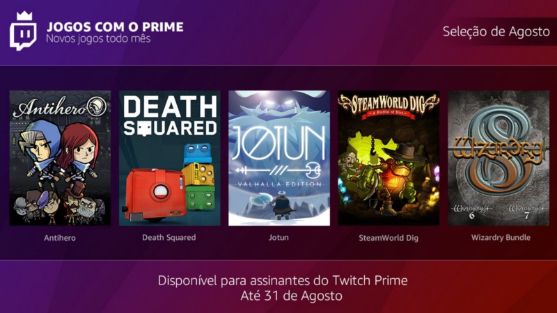 A Twitch continua com seu ótimo sistema de recompensas a tos seus assinantes Prime, agora em Agosto serão adicionados 5 novos títulos.