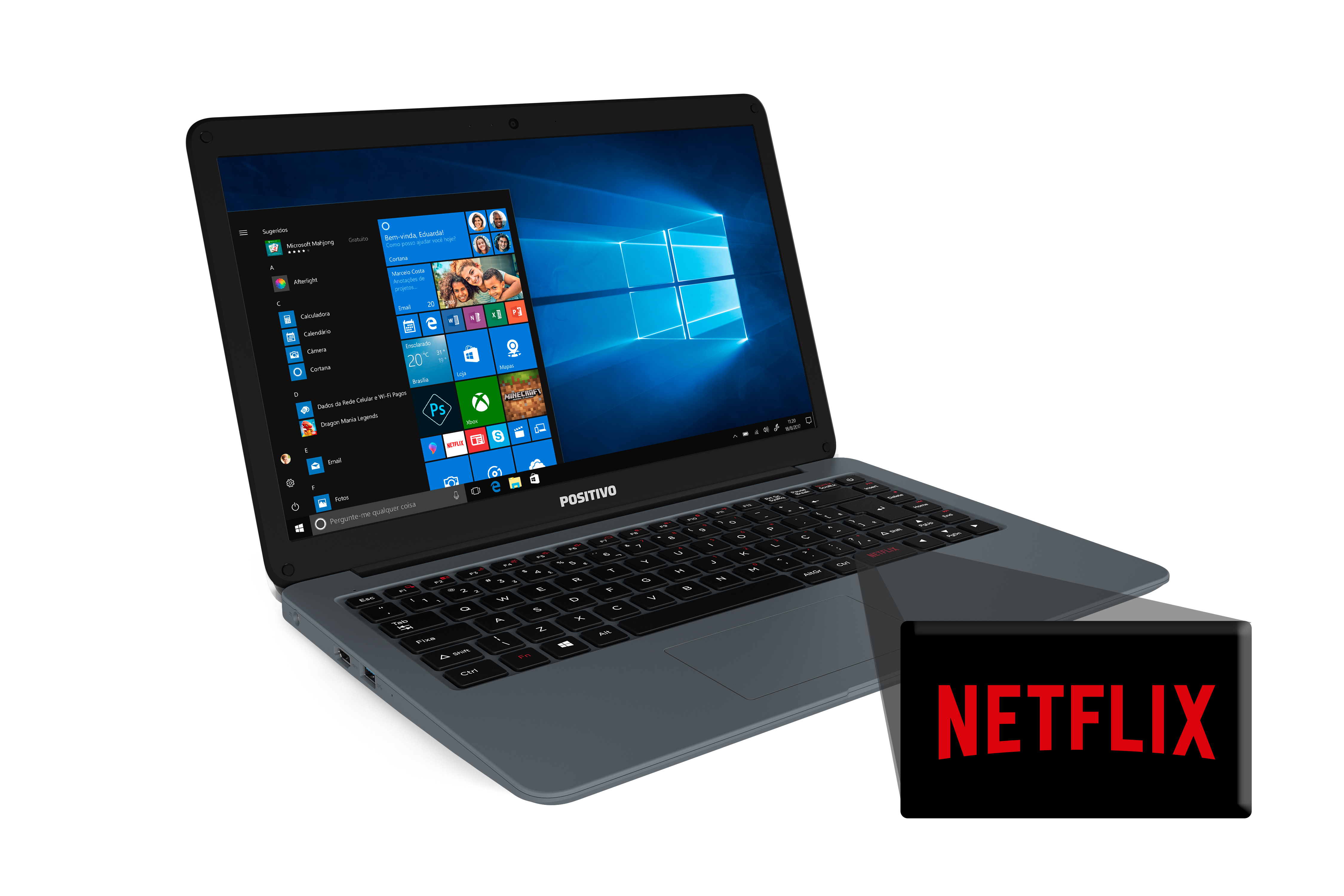 Os notebooks da série Motion, trazem pela primeira vez uma tecla dedicada para o Netflix, uma forma rápida de começar a assistir suas séries e filmes, esta é uma parceria oficial entre Netflix e Positivo. Positivo Motion Q232A Gray, que nasce com acabamento emborrachado na cor cinza, bateria com mais de 6h de duração. A tecla exclusiva também está presente nos modelos Positivo Motion C432A, com processador Intel Celeron, 4GB de memória RAM e 32GB de armazenamento, e no Positivo Motion i31TA, que apresenta processador Intel Core i3, 4GB de memória RAM, 1TB de armazenamento, ambos com sistema operacional Windows 10 e tela de 14”. A marca também traz com a tecla da provedora de streaming em seu novo 2 em 1 de 13”, o Positivo Duo C464A-13, que chega ao mercado com processador Intel Celeron, 4GB de memória RAM e 64GB de armazenamento.