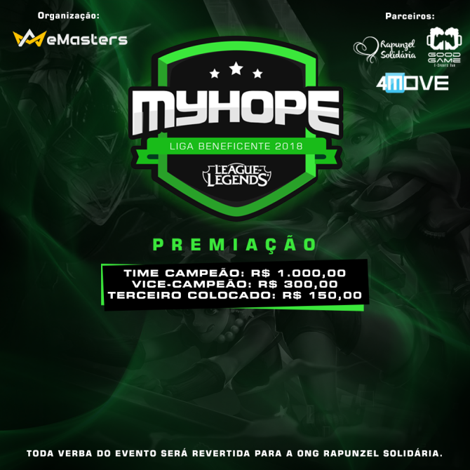 A Liga Solidária MyHope 2018 é a oportunidade perfeita para disputar um torneio de e-Sports e ainda ajudar o próximo! As inscrições para o torneio já estão abertas e vão até o dia 08 de Setembro.