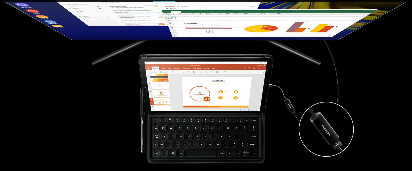 A grande surpresa, é que o Samsung Dex vem incorporado no tablet, você consegue ativar o modo que deixa praticamente como um PC portátil, como vimos nos smartphones ao conectar em um monitor com o acessório, já com o tablet, você consegue ativar este modo diretamente nele, ao conectar um mouse bluetooth e a capa teclado, vira praticamente um PC que você pode levar a todo lugar. Você ainda pode utilizar o Samsung Dex em seu monitor ou TV, será disponibilizado um adaptador HDMI vendido separadamente.