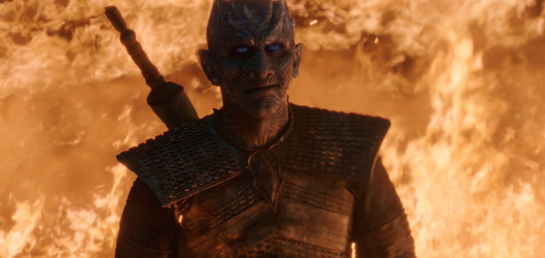 Quando Daenerys se dirige com Drogon em direção ao Rei da Noite e recita a famosa palavra “Dracarys”, o fogo consome a cena e a tensão aumenta. Longos segundos se passam até ser revelado que o mesmo continua vivo e ainda tem a audácia de soltar uma emblemática risadinha de canto para Daenerys. Em seguida, quando achamos que finalmente Jon iria matá-lo, todos os mortos são revividos.