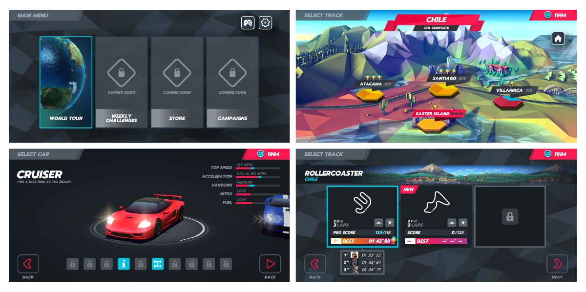 Horizon Chase receberá diversas novidades, entre elas um visual totalmente repaginado em sua interface, jogadores que curtem o game gratuito, agora tem sua experiência aumentada com 3 copas completas, você já pode correr em 30 corridas totalmente gratuita no modo campanha, com a possibilidade de escolher entre 7 carros.