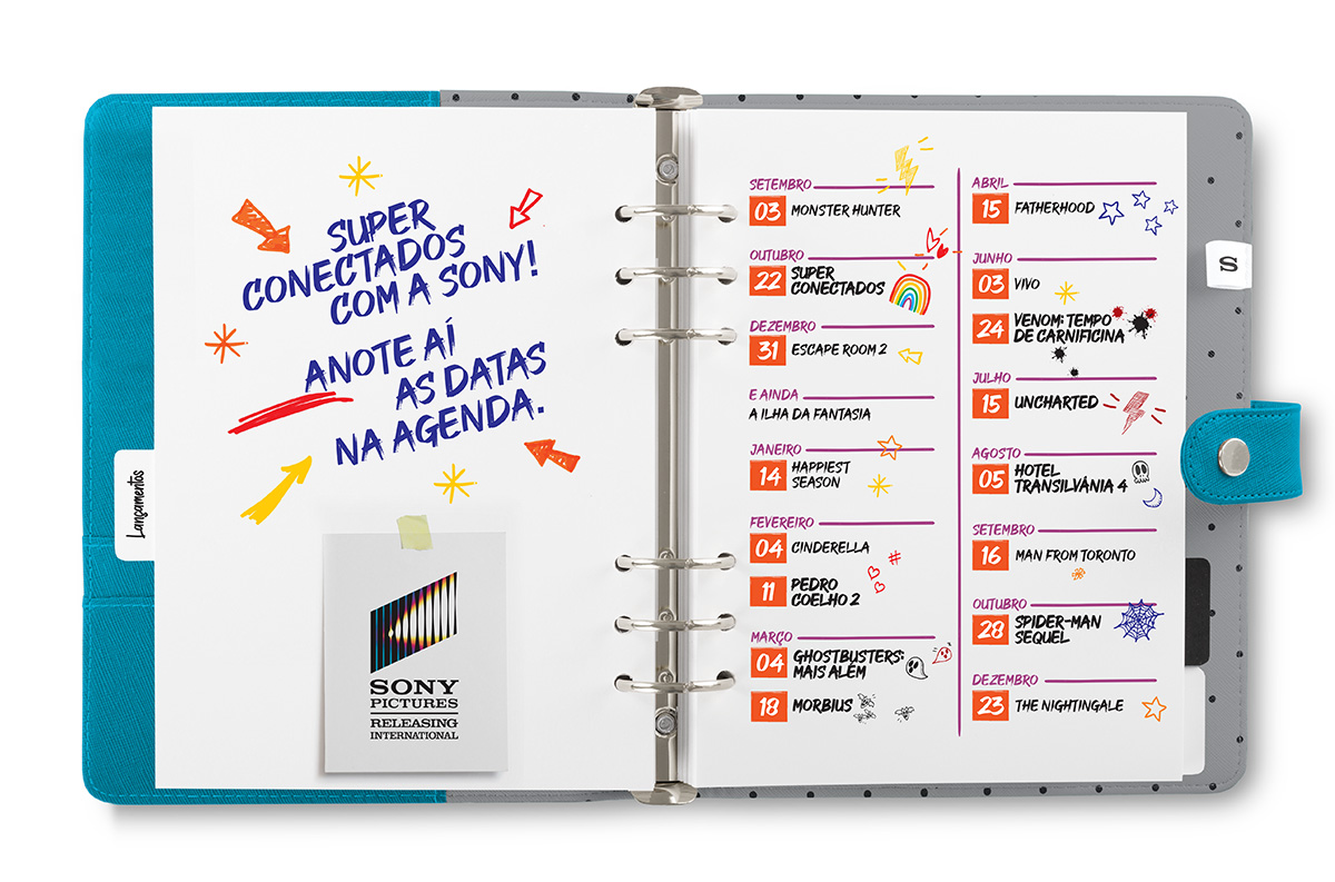 “Super Conectados” agora estreia em 22 de outubro. A sequência de “Escape Room” também foi antecipada, estreando dia 31 de dezembro deste ano. “Fatherhood”, estrelado por Kevin Hart, estreia em 15 de abril de 2021. A animação “Vivo”, chega aos cinemas dia 3 de junho de 2021. “Uncharted”, baseado no famoso game e antes previsto para outubro de 2021, foi antecipado para 15 de julho de 2021. O novo filme da franquia “Hotel Transilvânia” agora estreia em 5 de agosto de 2021, cinco meses antes da data prevista inicialmente. A sequência de “Homem-Aranha” chega aos cinemas brasileiros em 28 de outubro de 2021, uma semana antes da estreia nos Estados Unidos.