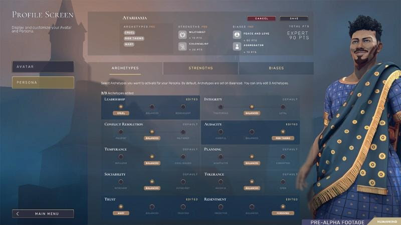 Em Humankind, todas as civilizações serão representadas por um Avatar, sendo que os jogadores poderão personalizar seu próprio e compartilhá-lo com outros jogadores.