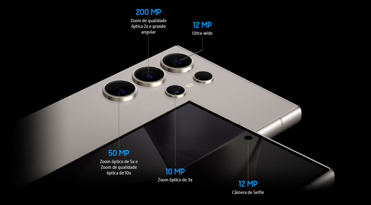 Na tela, o Corning Gorilla Armor no Galaxy S24 Ultra é oticamente aprimorado e demonstra durabilidade superior a danos causados por arranhões do dia a dia. Resultando em uma redução significativa em até 75% dos reflexos em uma ampla variedade de condições de iluminação, assegurando uma experiência de visualização suave e confortável.